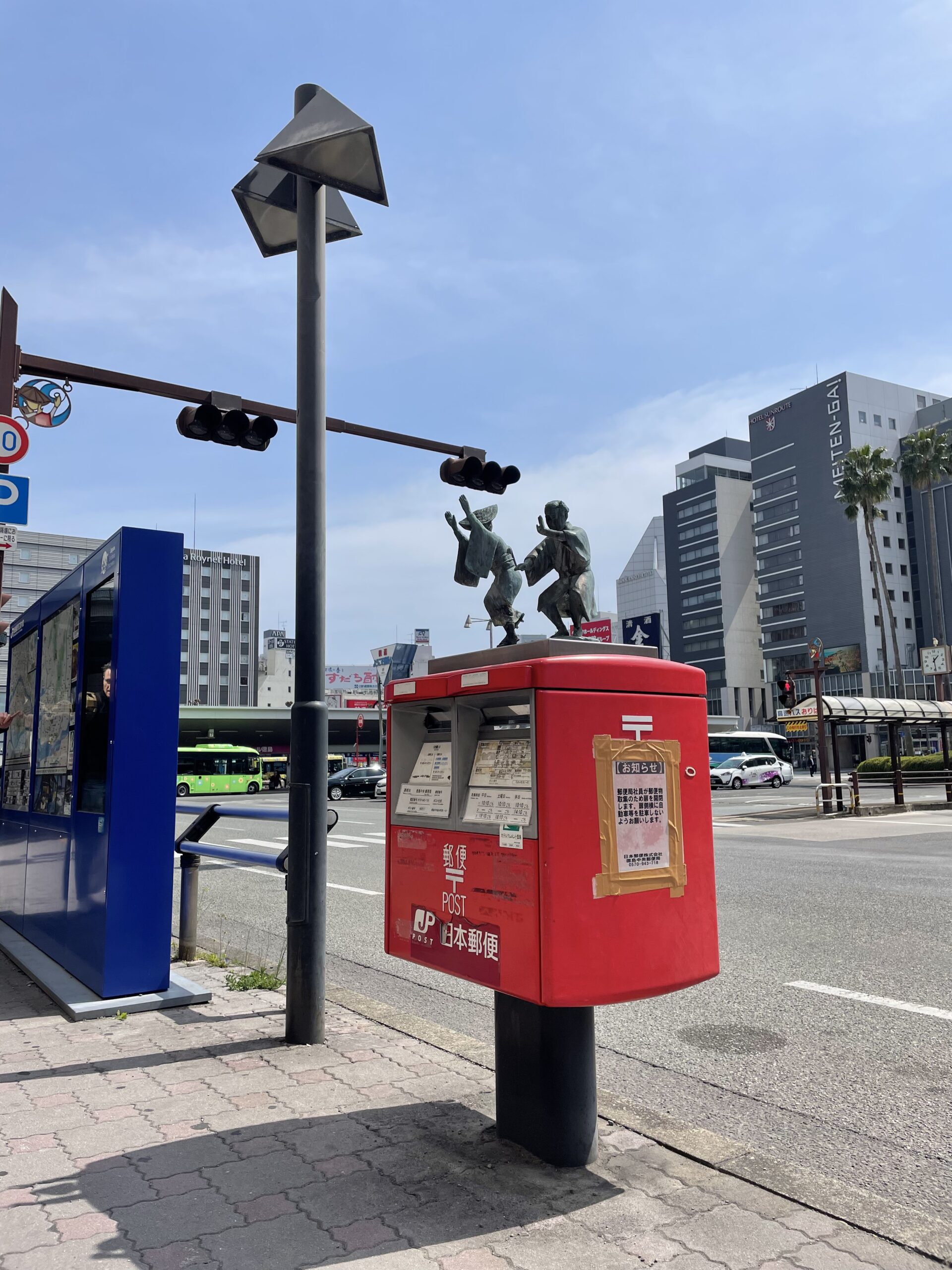 阿波踊りのモニュメントが乗っている郵便ポスト