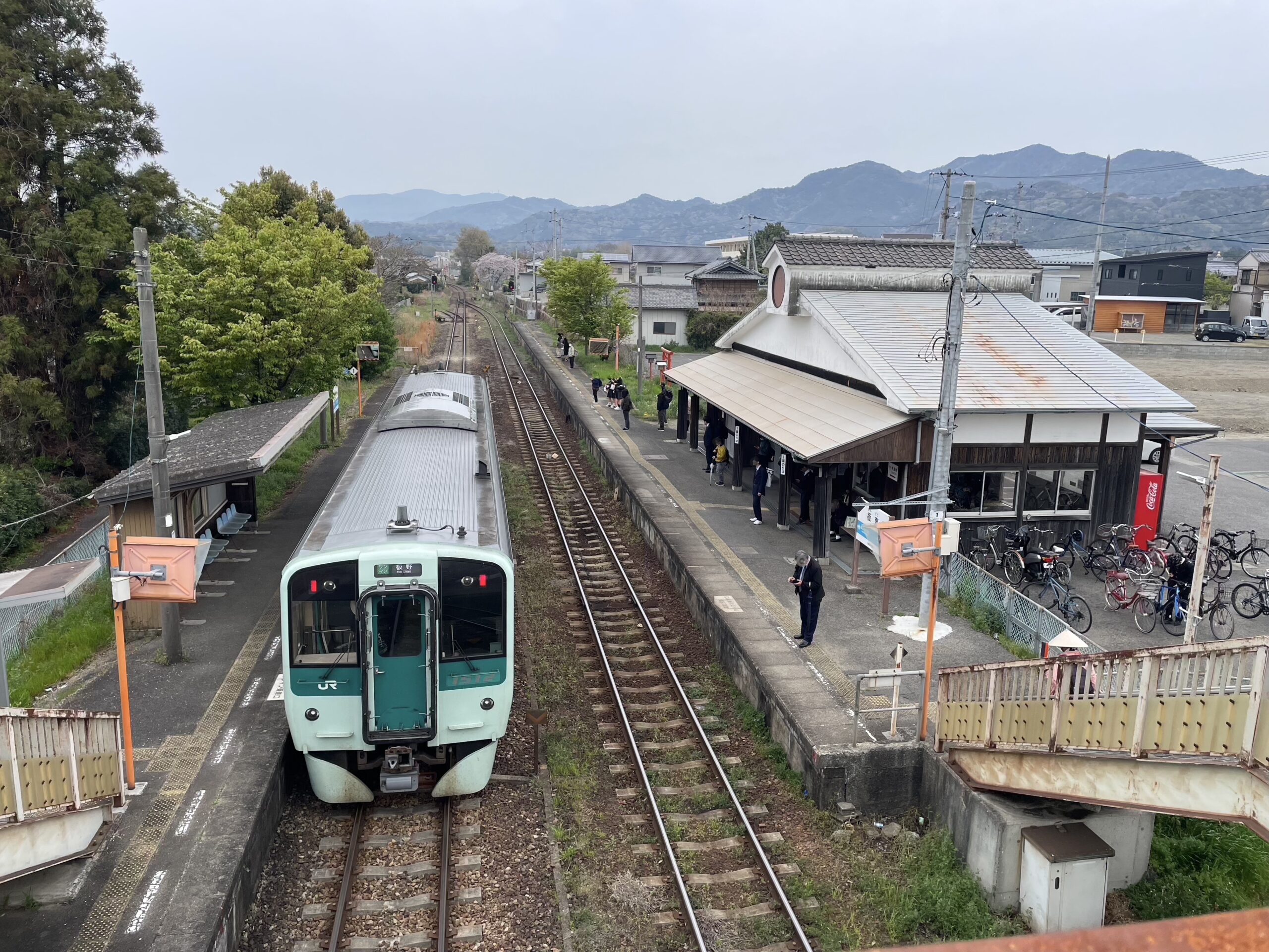 徳島駅のホームで待っていた板野行きの電車は、通勤時間帯であろうがこぢんまりとした1両編成のワンマンカーである。昨日予習しておいたおかげで滞りなく予定の電車に乗ることができた。しかし昨日と異なるのは、「白衣、菅笠、金剛杖、そして巨大なバックパック」というガチお遍路のいでたちである。自分で自分の格好に慣れずもじもじしながら座席に座ったが、地元の人たちにとっては日常のひとコマ、何事もなく電車は定刻通りホームを出発する。同じように霊山寺に向かうと思われるお遍路さんが何人か乗っており、内心ちょっとほっとした。