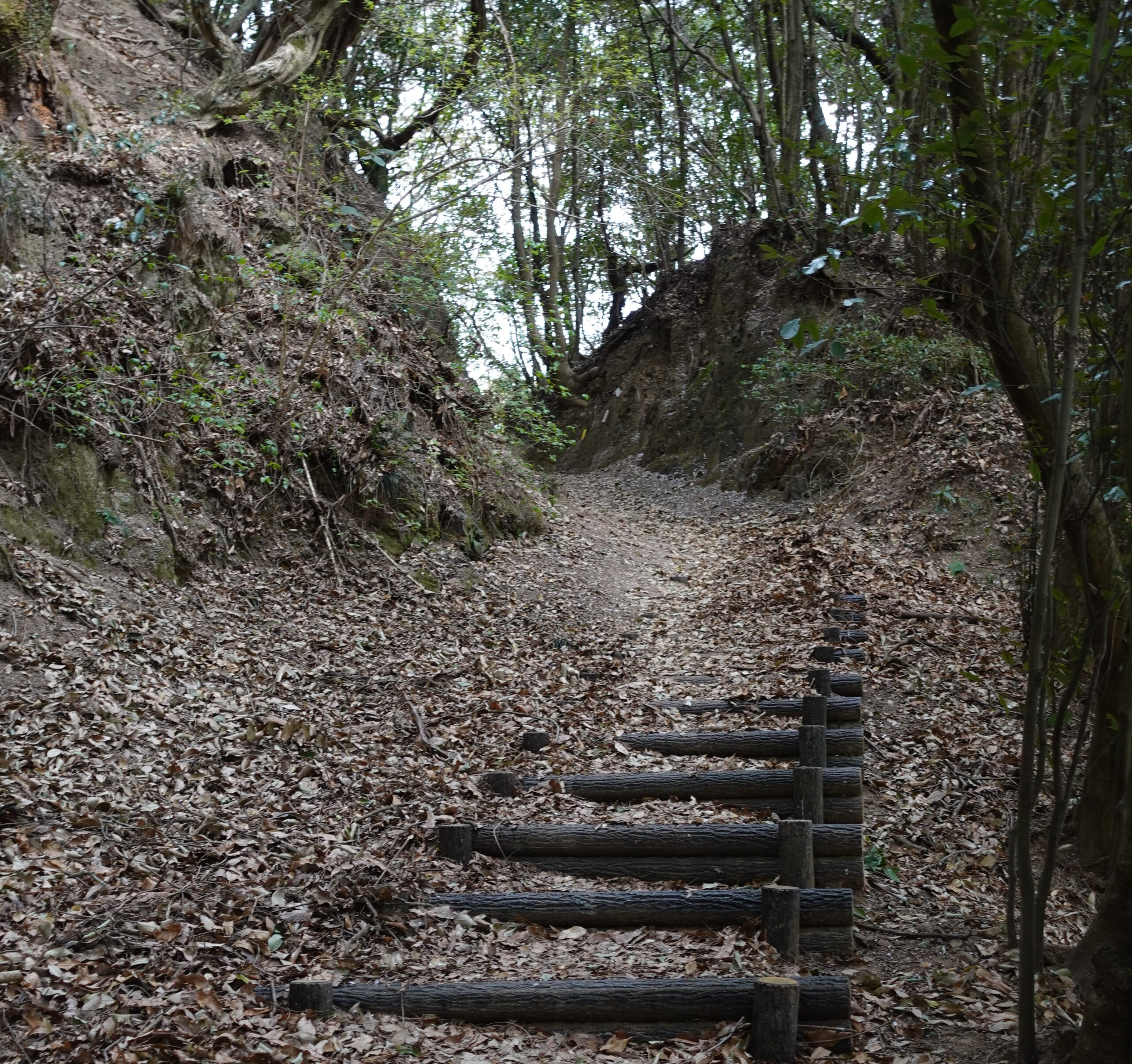 愛染院から大日寺にかけては古い遍路道が残る貴重な区間とのことで、なだらかな山道の中を角が削れてまろくなったみちしるべやお地蔵さまが見守ってくれている。切り通しなんかも出てきて、思えばここが初めての遍路道らしい遍路道かもしれない。あと500mというところでT字路に突き当たり、4番大日寺と5番地蔵寺への分岐点に出た。ここから大日寺へはいったん車道沿いをゆるやかに上って山手に向かい、お参りしたら同じ道を戻ってくる、いわゆる「打ち戻り」区間になる。