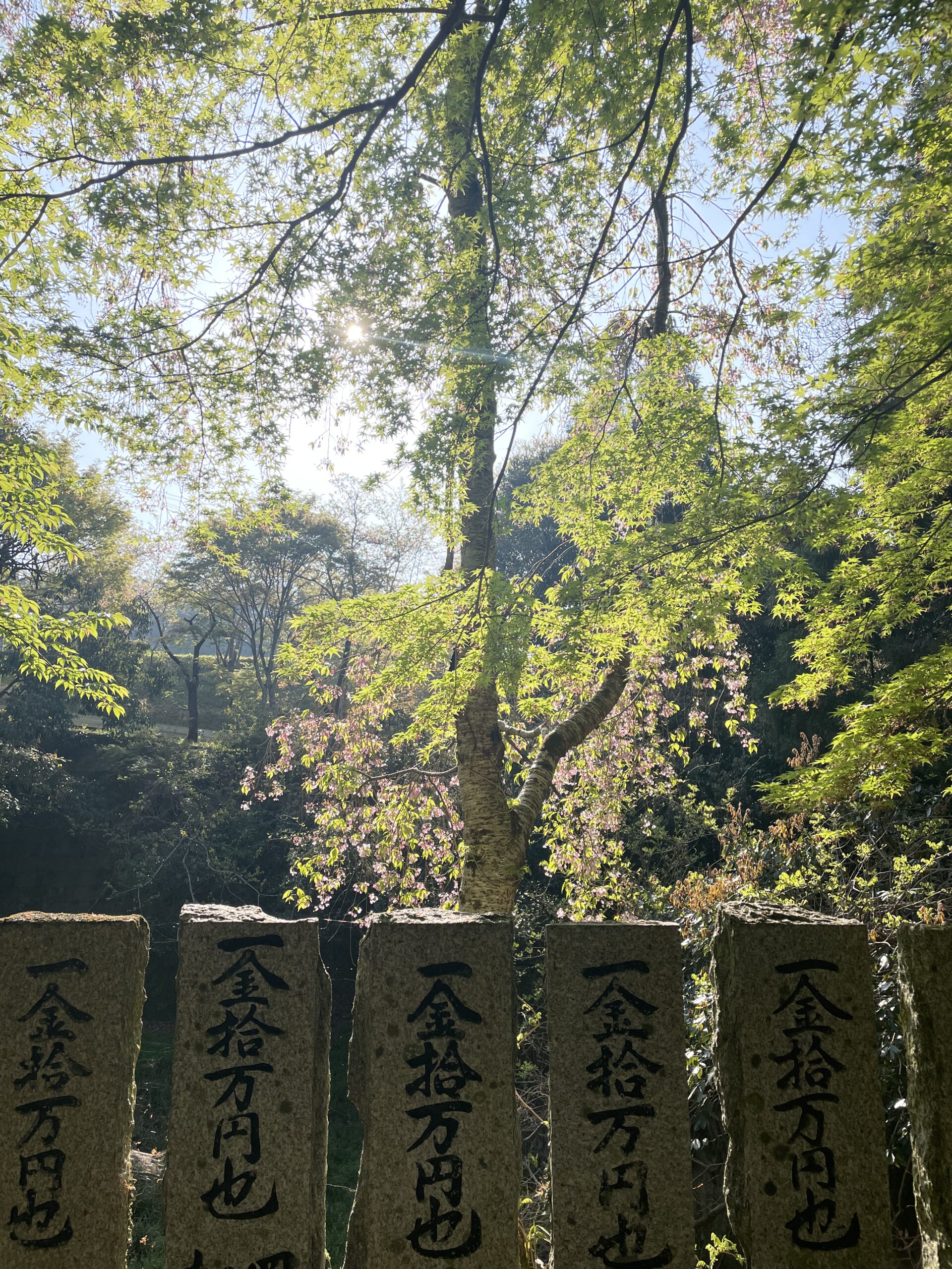 珍しい黄緑色の花びらの桜を見かけたのでそれを写真に撮っていると、「それは熊谷寺で一番最後に咲く桜やで」と後ろから声がかかった。「日課」を終えたおばあちゃまが境内から戻ってきて、こちらに向かってくるところだった。先ほど高架の下で行き先を示してくれたことのお礼を伝える。桜を見ながらしばらくお話をした後、おばあちゃまは立ち去り際に言った。「歩きでお遍路さんするんやろ。いい人もたくさんおるけど騙そうとするもんもいるから気をつけや。朝から嫌なこと言ってごめんやで。でも気いつけや」と。