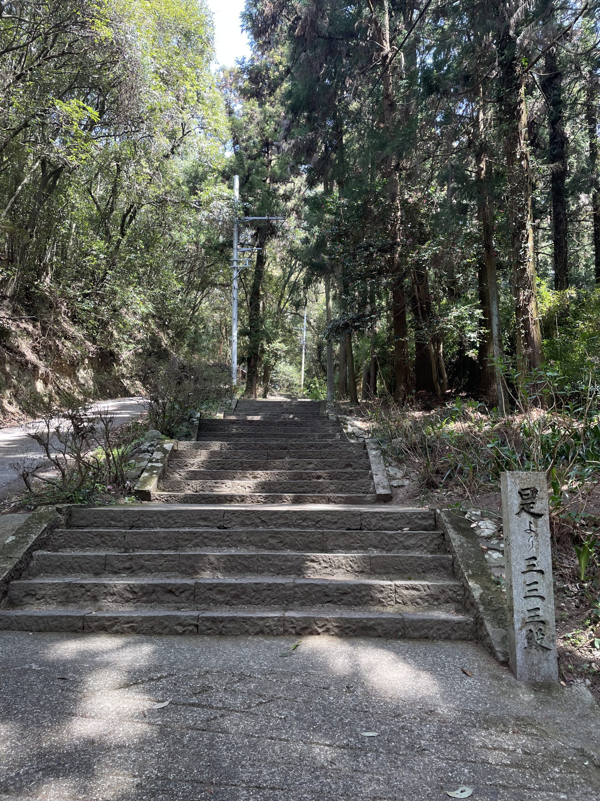 20分ほど休憩して、気持ちも落ち着いたので再び歩こうと鳥居を出たところで、ちょうど御夫婦の歩き遍路さんがやってきた。お二人は日本人の男性と台湾人の奥様で、上海から来られているとのことだった。同じく暑さで疲れた様子だったので、神社の日陰をオススメし、入れ替わりで13:50に神社を出発した。