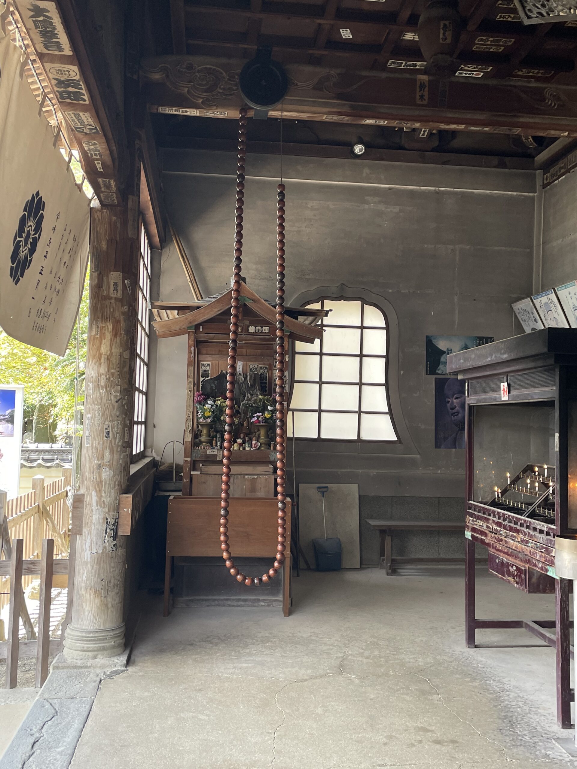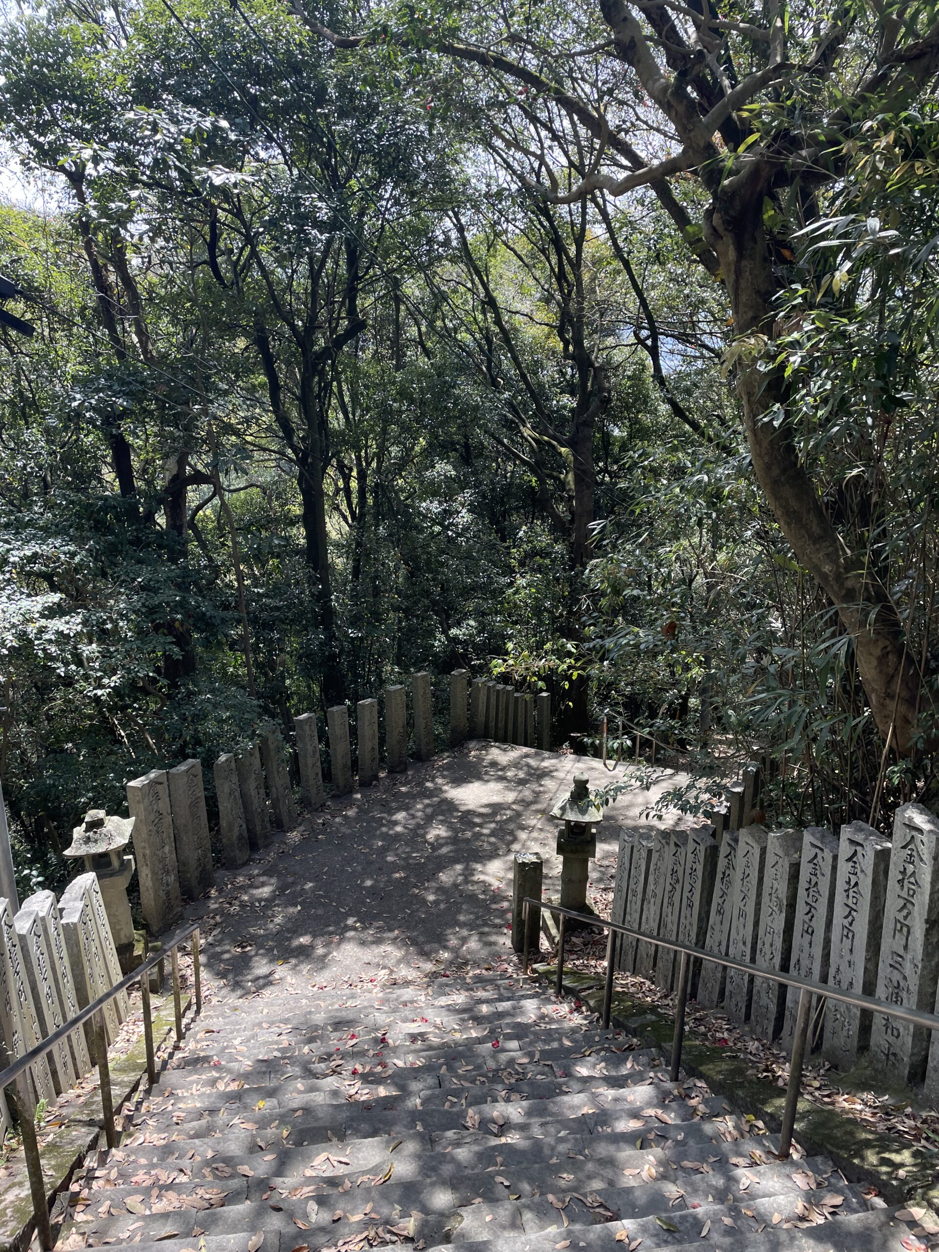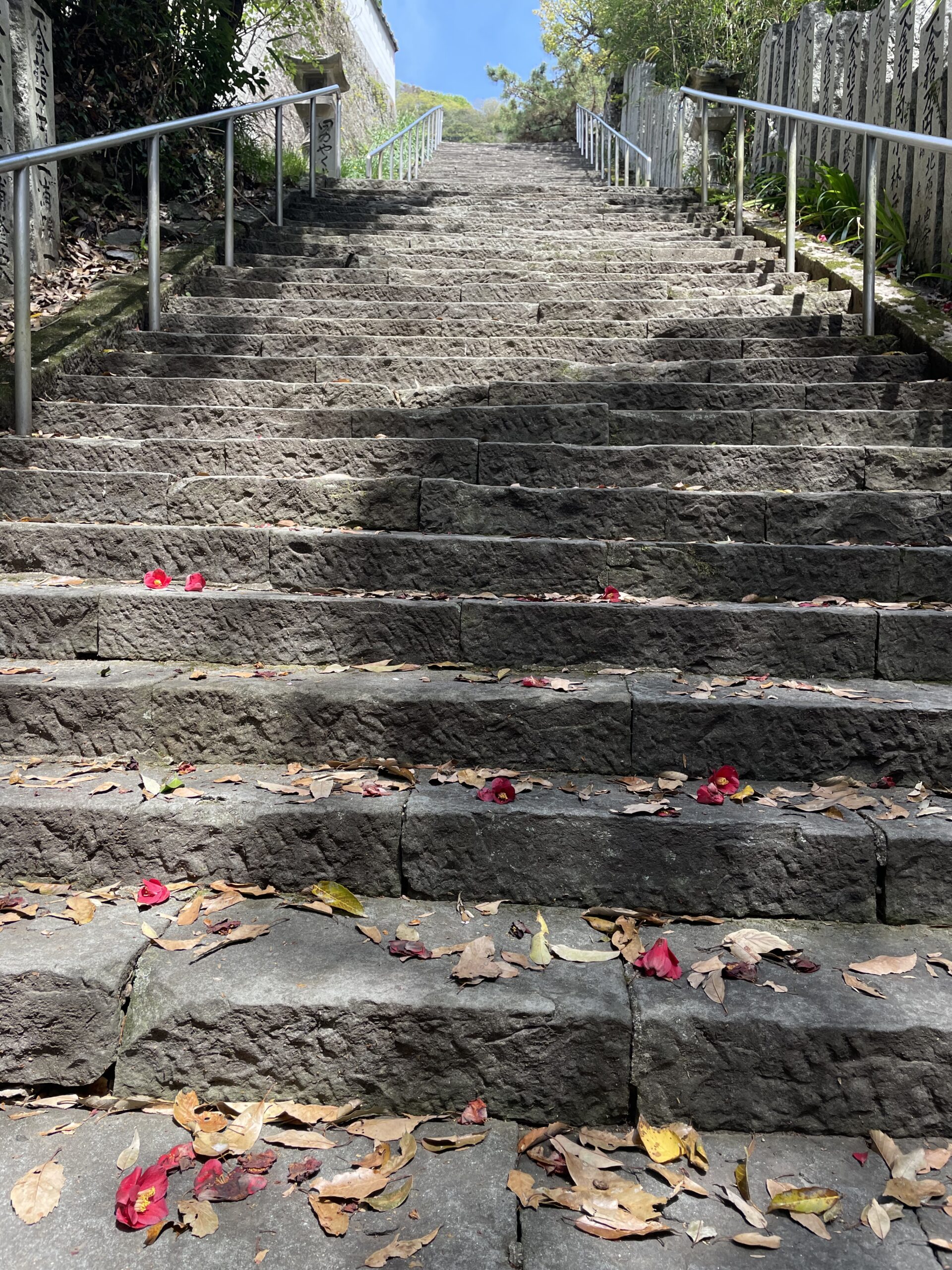 納経をいただき、再び333段の階段を下って山門へ戻る。下りのほうが膝にくるので慎重にいかねばならない。厄除け坂の先、90度曲がっているところの先が森になっていて全然見えないなあ、と思いながら下りていくと、その奥から胸の中を通り過ぎていくような涼やかな鈴の音が聞こえてきた。