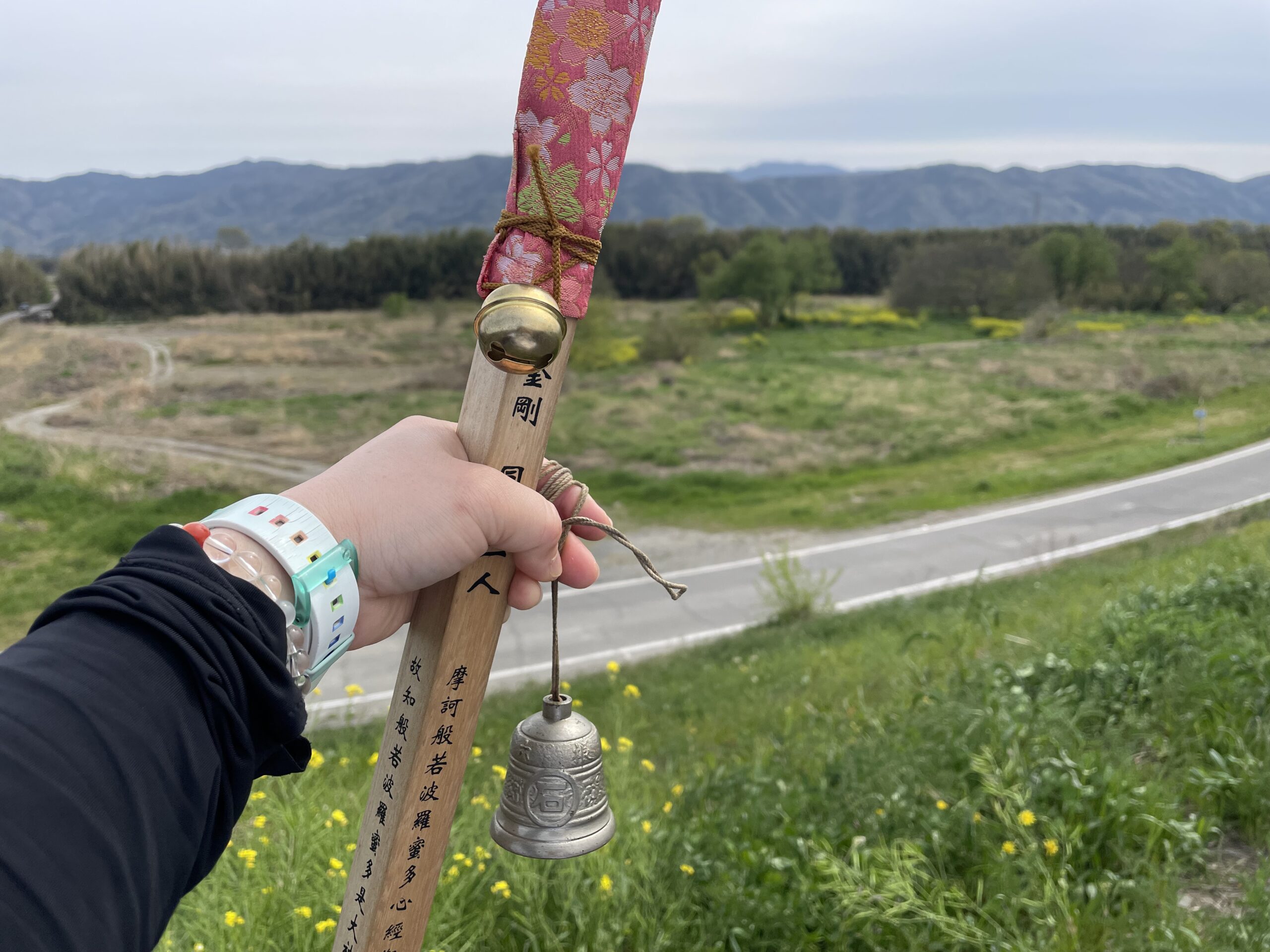 わー、なんて清らかな音色なんだろう、と思いながらその角を曲がると、白髪のおじいちゃまが息を切らせて階段を登ってくるところだった。先ほど聞こえたあの音は、その山谷袋に下げられている鈴のものだ。挨拶を交わし、休憩がてらお話をする。おじいちゃまは御年77歳、岡山から。昔一度バスツアーで四国を回ったことがあるのだが、この度息子さんが八十八箇所を巡り高野山まで行ったというので、自分も、と思い立ち今回は個人で車で回っているとのことだった。四国を回ろうという時に、その時間と体力があること、そのタイミングがあるというのが何よりも有り難いというその言葉に心から共感する。本当に、来ようと思って来れることがまず「有り難い」のだ。