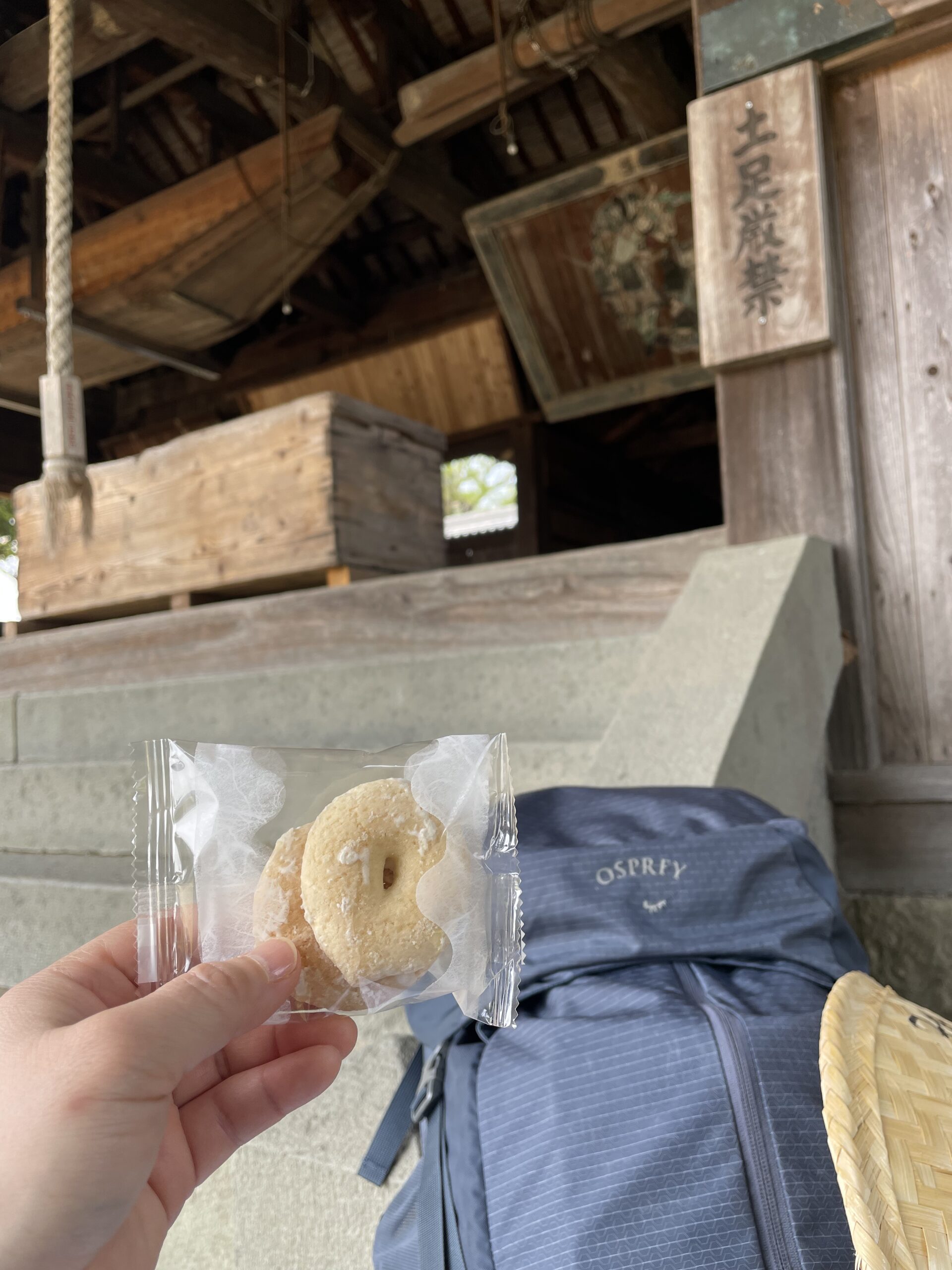 切幡寺でもらったお菓子でチャージ(拡大できます。縦長)