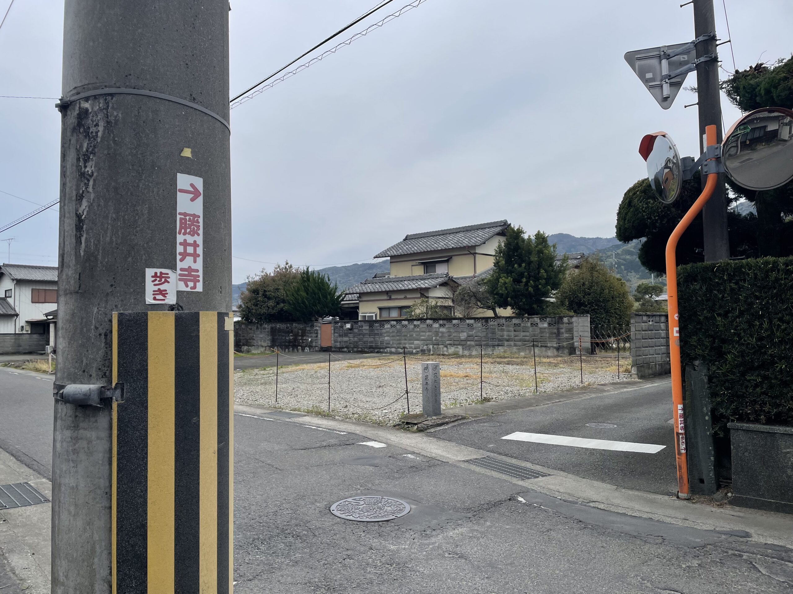 空き家とはいえ、思いっきり民家の軒先(左奥が藤井寺の山門)