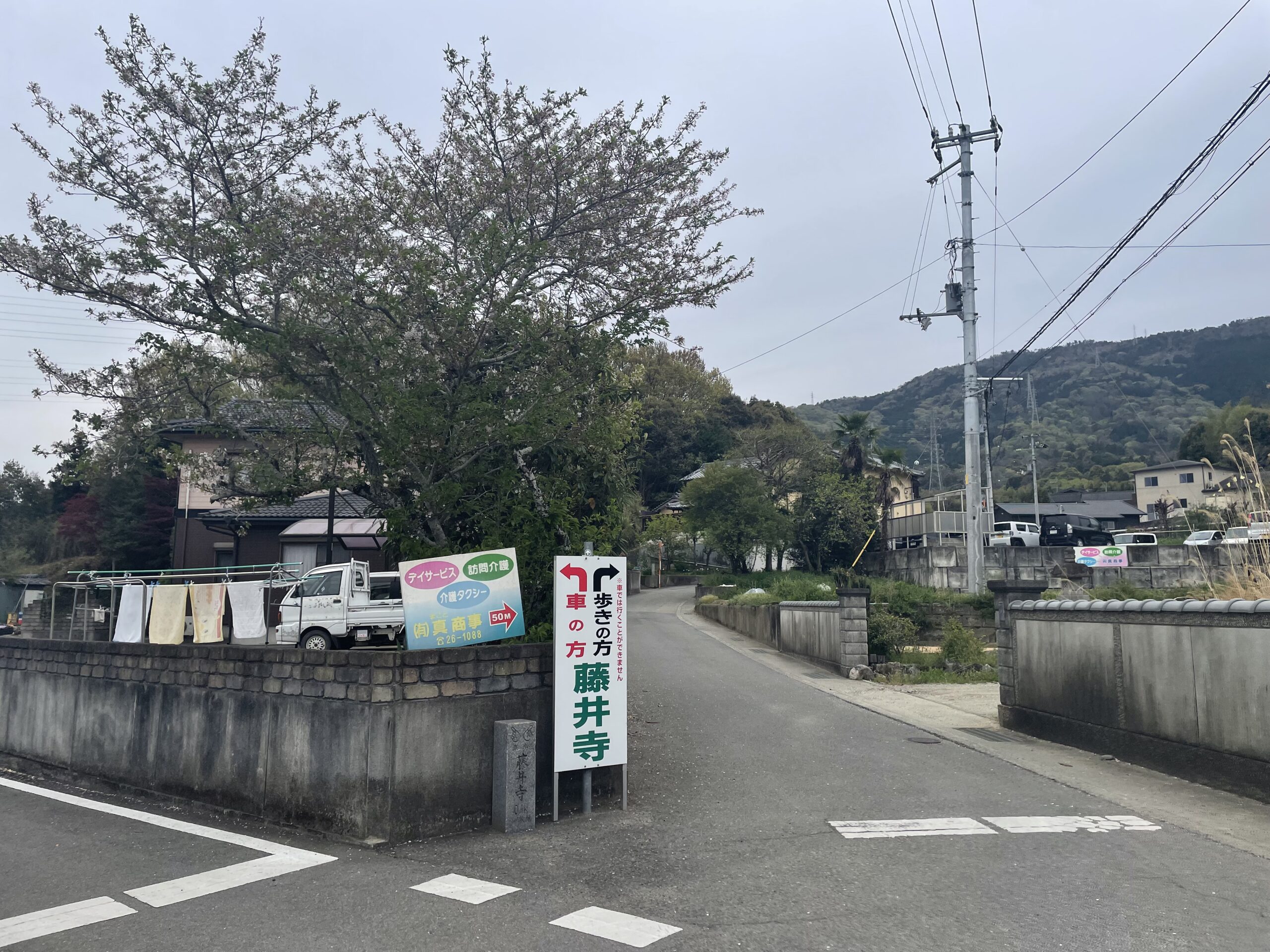 善入寺島を出てから約1時間、やっと「藤井寺0.4km」の分岐が現れた!!「歩きの方→、車では行けません」と書かれた看板を右に進むと、急に人の家の裏山のようなところに入り込み、これまた人の家の裏庭のようなところに下りてきて、最後に人の家の軒先を通って、やっとのことで藤井寺に到着した。時刻は15:50。切幡寺を出発してから3時間15分、想定どおりといえば想定どおりなのだが、もっとずっと長く感じた。これが、修行か…。