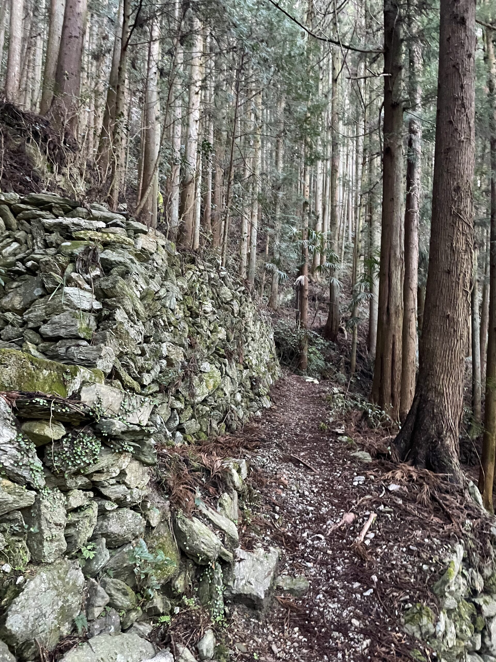 歩き道へ入ると、いきなり急勾配の登りが待ち受けていた。さっきまでお天気に浮かれていたので、いかんいかんと気を引き締める。この道には幾重にも連なる古い石垣がたくさん残っていた。お墓は今も訪れる人がいるのか、きれいにお手入れされている。かつてはここに家や畑があって、人々が住んでいた。どんな生活だったのだろう。決して住みやすいとはいえないこの場所で、暮らしや農作物の収穫をできるだけ良くするためにと、ひとつひとつ石を積み上げた。長い年月と労力をかけてきた土地を去ることになったのは、いつ、どういった理由だったのだろうか。
