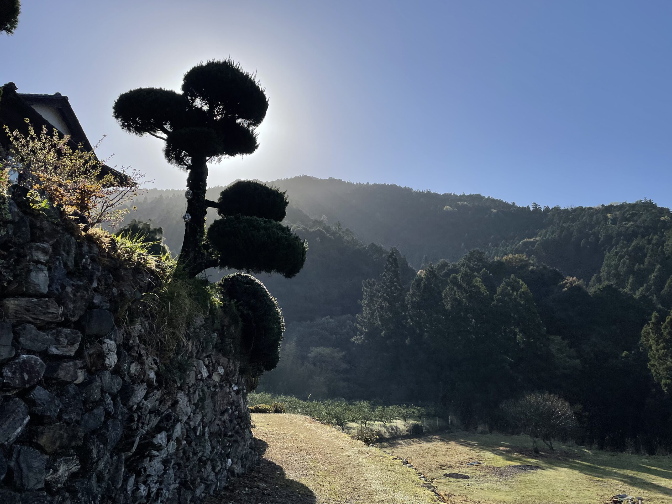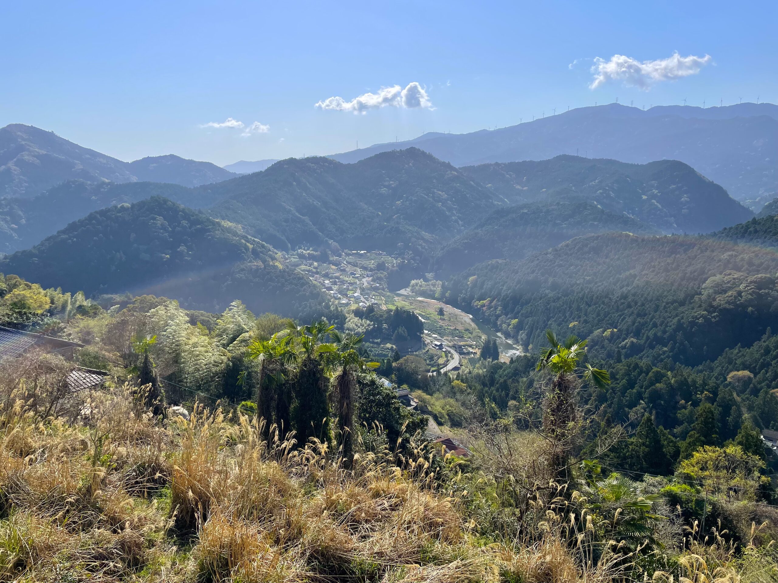 そろそろこの天空の道も終わりに近づいていると思うと名残惜しく感じて、視界が開けるとつい峠の方を振り返ってしまう。あの赤い屋根が辛うじてまだ見えた。もう遥かに上のほう、普通に考えるともう二度と来ないのだろうなあと思うと、一日に何回も郷愁に襲われる。人とも景色とも通り過ぎる里山の暮らしとも、一期一会を強く意識し、一瞬一瞬を刻みつけるように噛みしめる。本当は普段の生活もそうであるはずなのだが、日常に埋もれているとその感覚がどうしても薄まってしまう。それを思い出すために、人は何度も四国を巡るのだろうか。