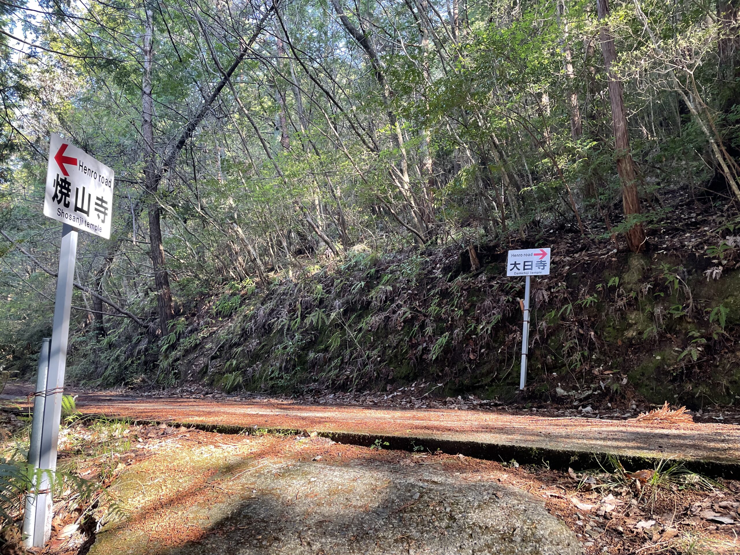 ・童学寺を経由するとプラス4kmかかる(行者野橋から大日寺直進は4.5km、童学寺経由 8.4km )。