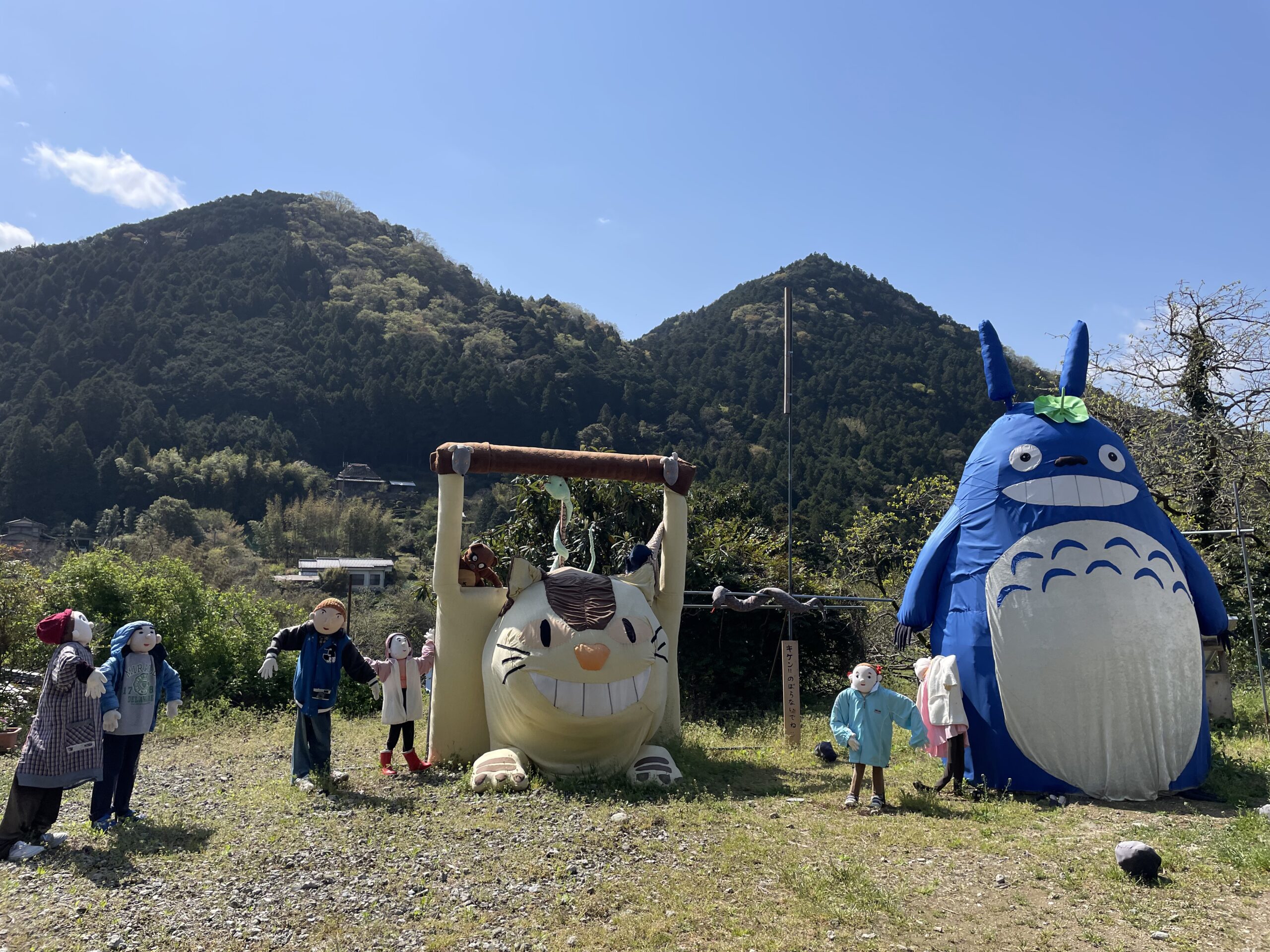 10:00ちょうど、広場にトトロと仲間たちが見えてきた。超力作の超大作だ。そして、広場の先には「植村旅館」。そう、実はこのトトロは昨日ヤマさんを送ってきた時に1回見ている。すだち庵のオーナーさんは「ネタバレになっちゃうけど…」と言っていたが、はるばる戻ってきたような不思議な感覚だ。