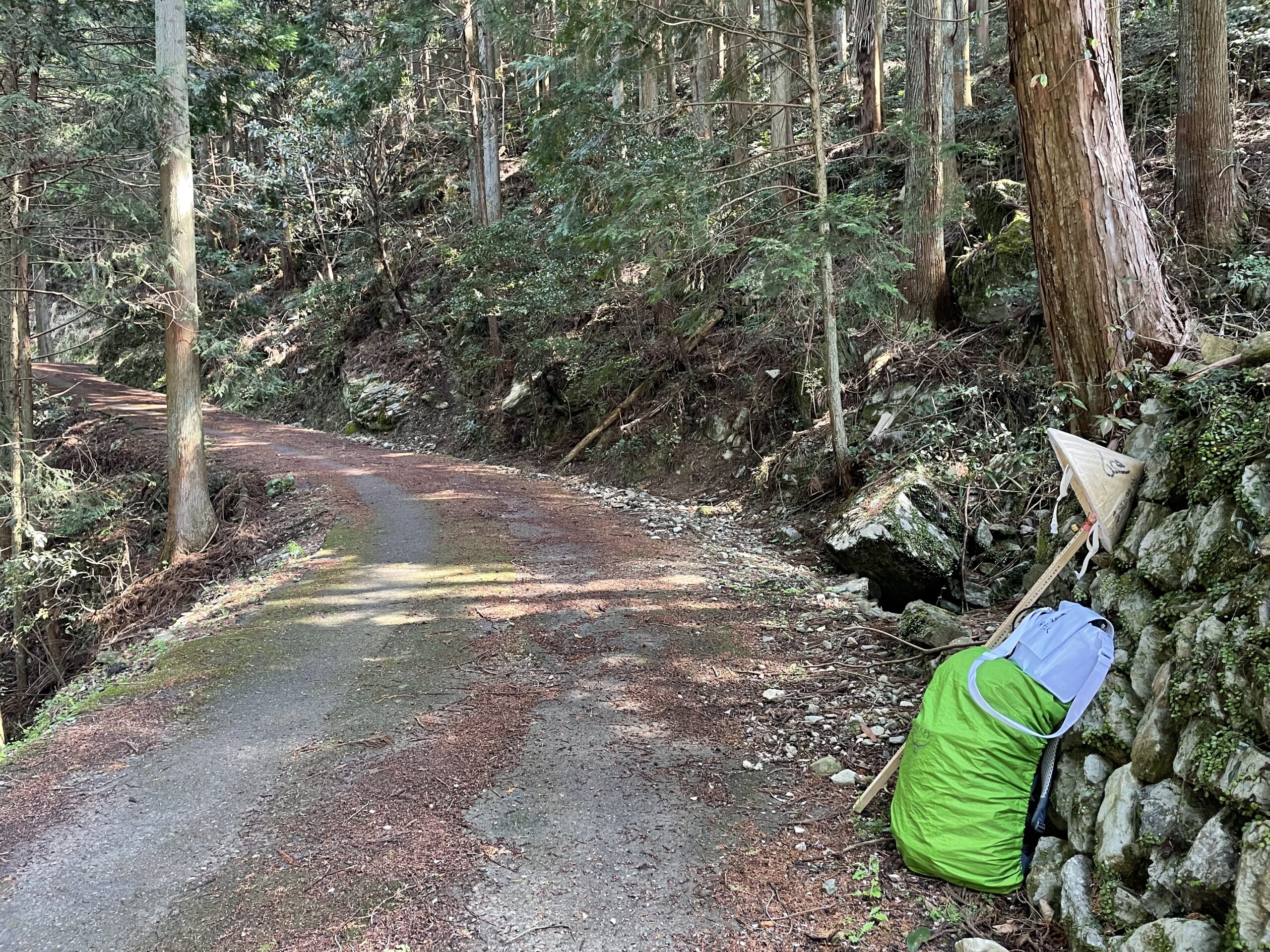 朝ごはんを食べたら手早く(当社比)荷造り。昨日は雨登山対策で切幡寺のおじいちゃまに頂いたお鈴もザックの中にしまっていたのだが、今日はそれを取り出して山谷袋に下げてみた。ザックカバーはまだしんなりしていたので、ザックに被せたまま乾かしながら歩くことにする。準備を終えて外に出ていくと歩くのに合わせてリーンと澄んだ音が鳴って、お遍路たちを見送るために庭で待っていてくれたオーナーさんにさっそくお鈴を褒めてもらった。