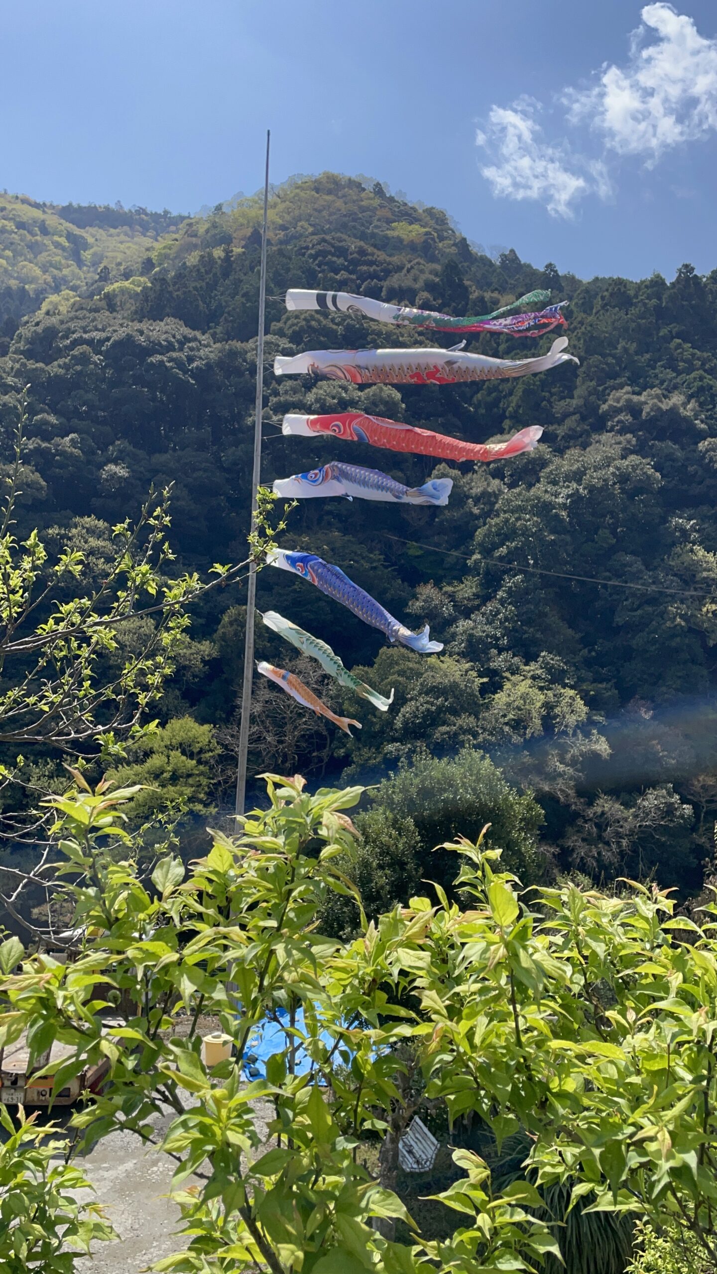 このあたりから風が強くなってきた。鯉のぼりも青空に気持ちよさそうに泳いでいる。川沿いの道そのものは平坦で単調だったが、道沿いには椿や桜はもちろん、山吹、白山吹、シジミバナなど色とりどりの花が咲き乱れ、まったく退屈することなく楽しく歩いた。家々の庭だけでなくちょっとした空き地にもたくさん花が植えられていて、気分が上がる。これは徳島のお国柄なのだろうか。