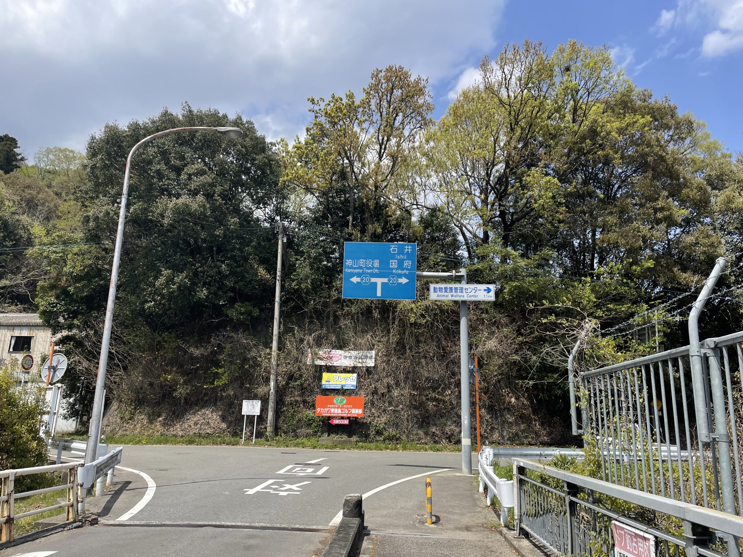 住宅地が途切れると、地方でよく見る「道路と山林だけの景色」が続く。「日本一美しいしだれ桜の町 神山へようこそ」と大きく書かれた看板が出てきたが、残念ながら桜はすっかり終わっていた。今は閑散としているが、行者野橋のたもとに「花見見物の渋滞の恐れあり」の警告もあったので、シーズンには混み合うのだろう。