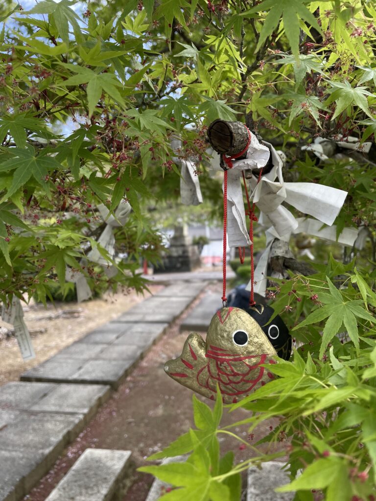 納経を終えたら、お待ちかねの風鈴の回廊に向かいつつ、境内の探索だ。童学寺はその名のとおり、弘法大師が幼少の頃にここで学んだと言われているお寺で、学業成就の寺でもある。大師はここでいろは歌四十七文字を創作して子どもたちに教えたとも伝えられており、新しそうな「いろは大師」の像があった。