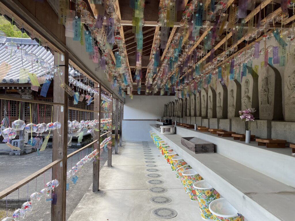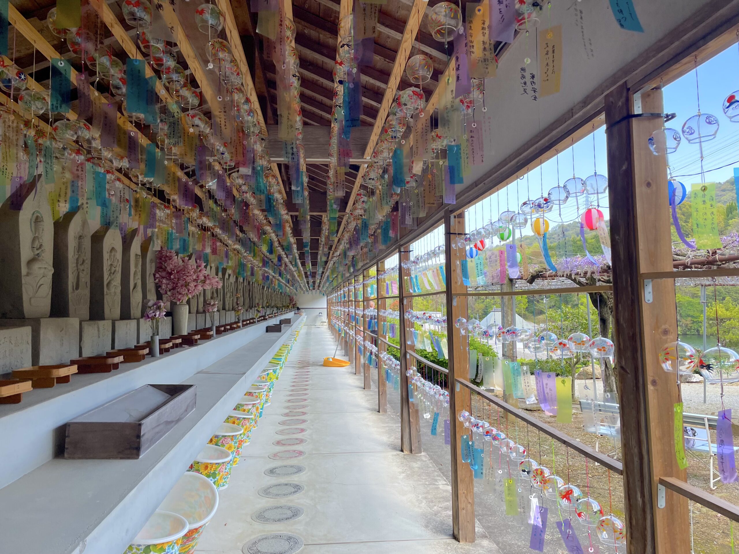 風鈴回廊が綺麗すぎて動画をたくさん撮ってしまい、スマホのストレージがまた大変なことになってしまった。撮る端からクラウドに上げては消しての自転車操業状態だ。浮かれてないでそろそろ次へ向かえとのことかもしれない。最後にもう一度回廊を通っていこうと思って入口に戻ると、ちょうどそこに来たオートバイ旅のおじさんに「お遍路姿撮ってもいいですか」と言われ、後ろ姿で去っていくシーンのモデルに抜擢された。そのまま山門に向かって画像はもらっていないので、良き感じだったことを祈るのみである。