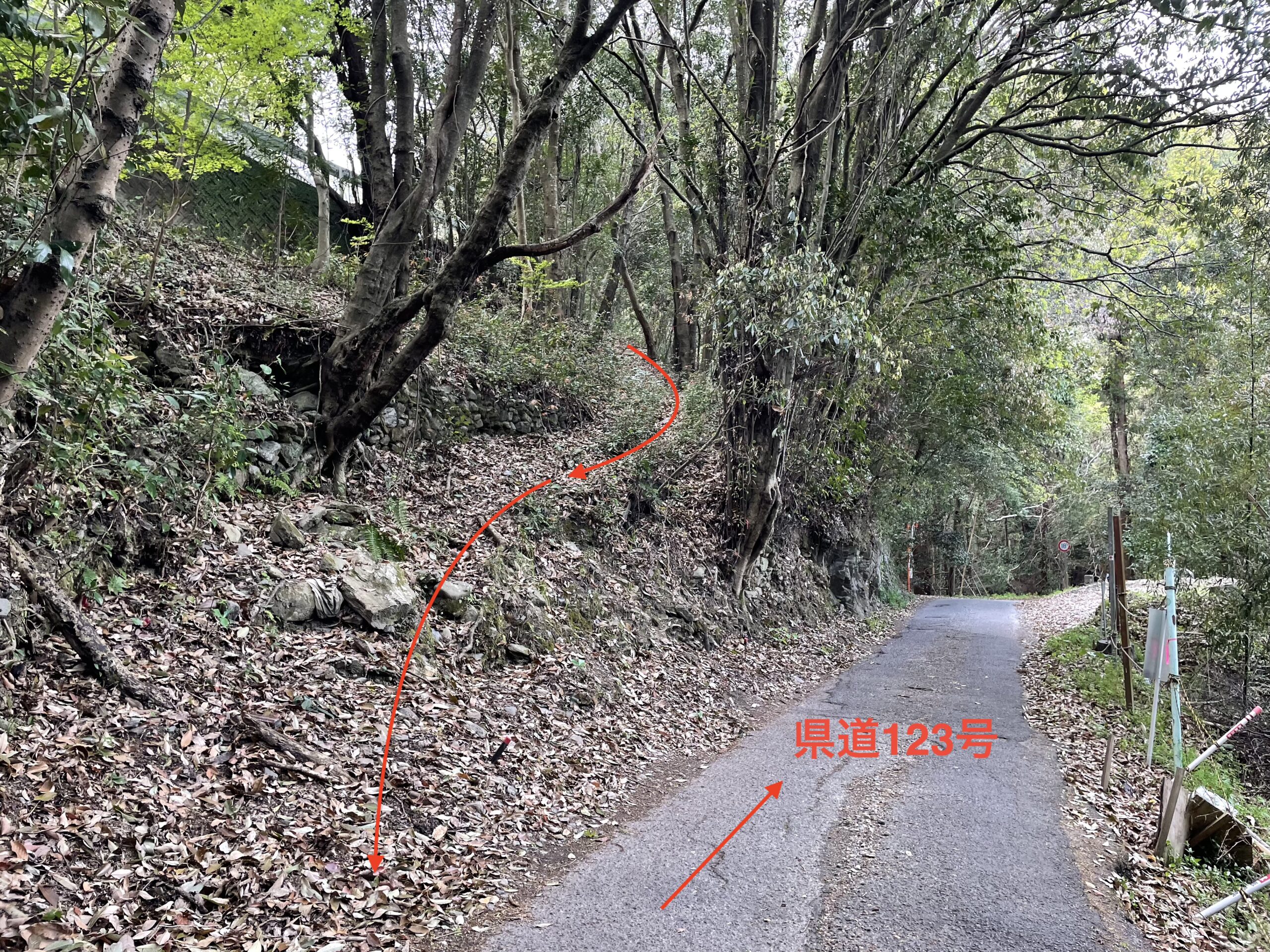 ②復路:歯ノ辻神社の前から県道123号へ下りる遍路道がある(若干獣道感が強いので注意)。450mお得。