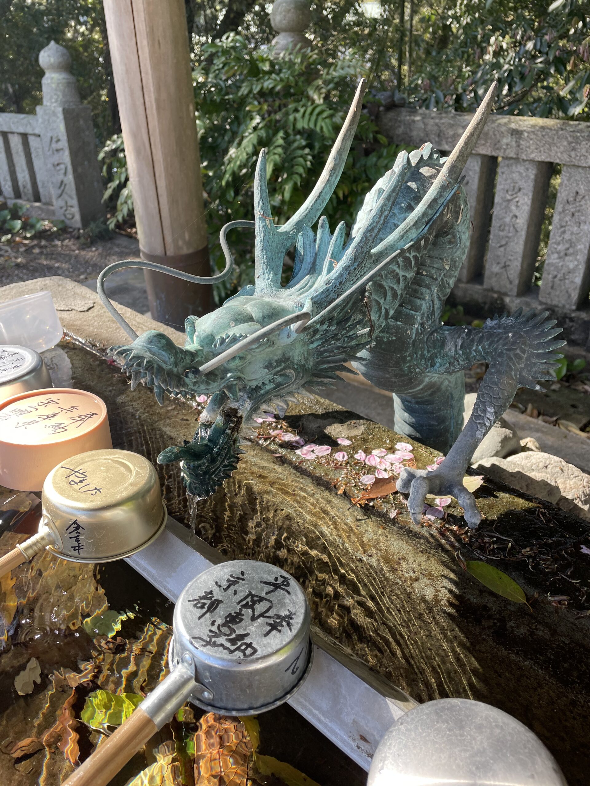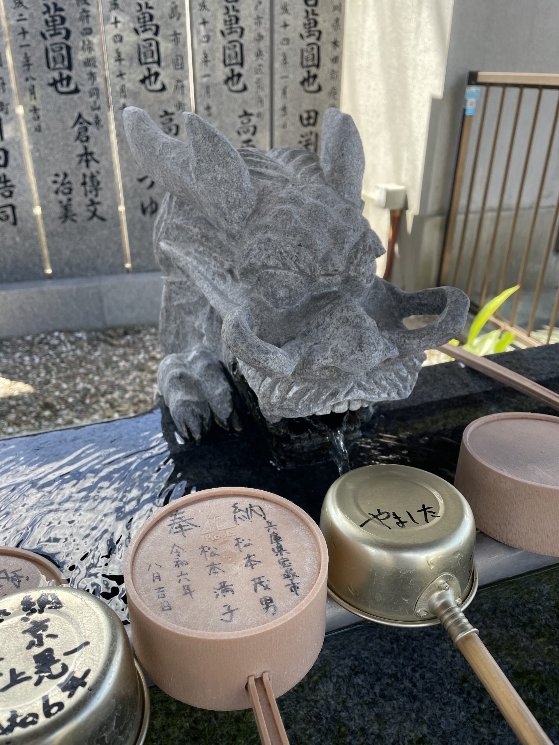 10:25、30分ほどで観音寺に着いた。入り組んだ住宅地の道路ぎわに立地しており、どんなに道路の向こう側に張り付いても、どっしりとした重厚な楼門をまっすぐ撮れるポイントがないくらいだった。ここもこぢんまりとした境内で回りやすい。手水鉢の縁に「あがっっ」と齧りついている龍がかわいいな、と思いつつ、ここでも「やましたさん」の柄杓を手に取った。このあたりでは小僧さんの衣装も揃えているのか、相変わらず目の焦点の合っていない小僧さんは国分寺と似た感じのベレー帽を被っていた。