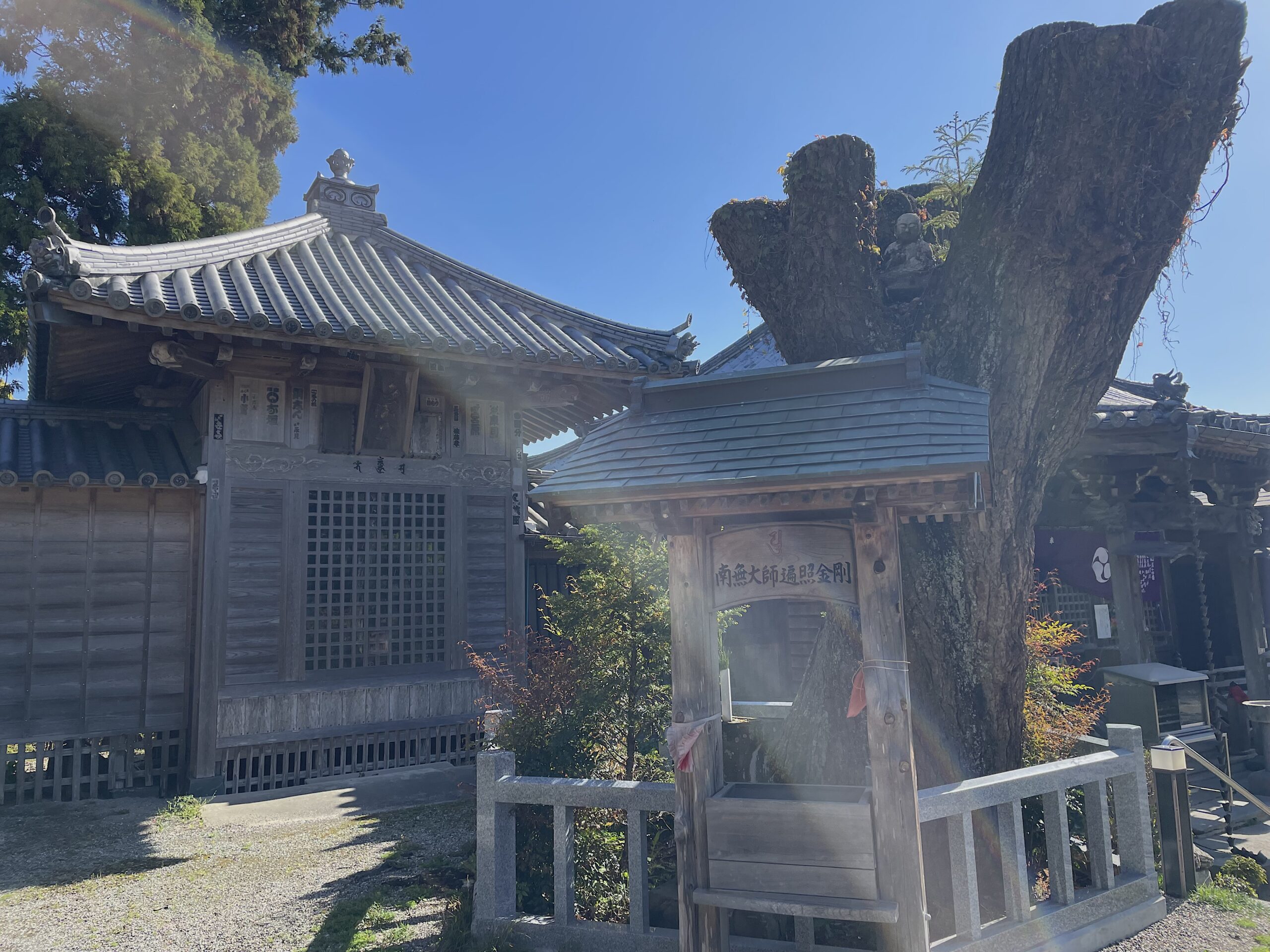 本堂の手前には大木の切り株があり、その股のところに小さな大師像がちょこんと座っていた。この木はアララギ(イチイ)の木で糖尿病に薬効があるとされており、この「アララギ大師」には糖尿病や眼病の治癒を願って人々が訪れるという。かつては10mを超えていたと言われるこのシンボルツリーは台風で被害を受けてしまったらしく、徐々に切り詰められて、今はほぼ幹を残すのみとなってしまった。