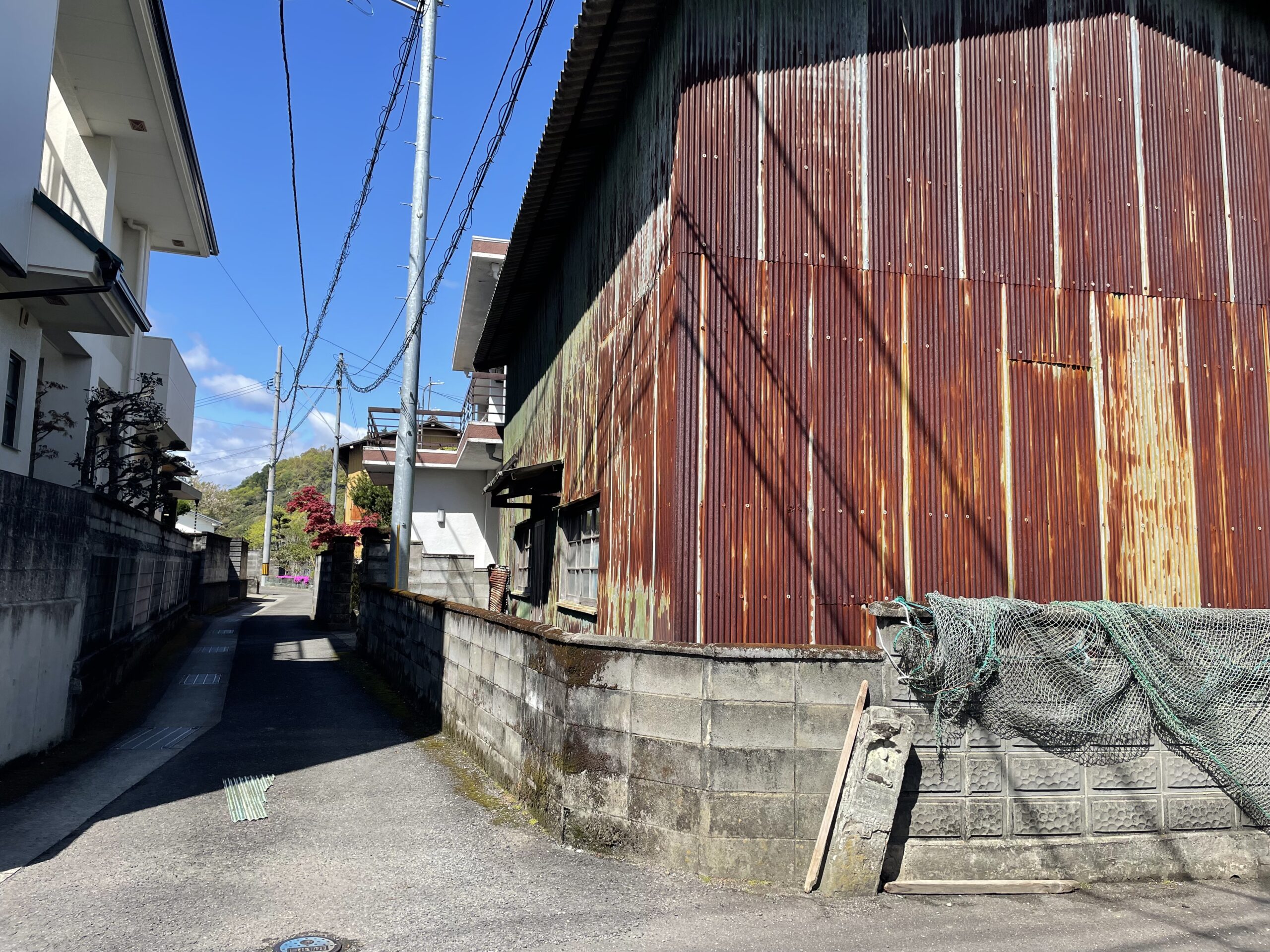 14:30、やっと完全に晴れてきたので歩きを再開した。雨宿りのために分岐を少し通り過ぎていたため引き返したのだが、思ったよりも先へ進んでいたらしく、来る角来る角で「ここか!?」と曲がってはすごすごと戻って来る、の繰り返し。結局橋を渡ってから歩いてきた道をだいぶ戻って、やっとルートに乗ることができた。分岐の目印は、緑の屋根が特徴的な「加茂名南小学校」の方へ下りていくこと(よく見ればカーブミラーにへんろシールがある)。その後は住宅地をひたすらまっーすぐ、歩くうちにすっかり青空になり、さきほどまでの荒れ具合が嘘のような晴天になった。