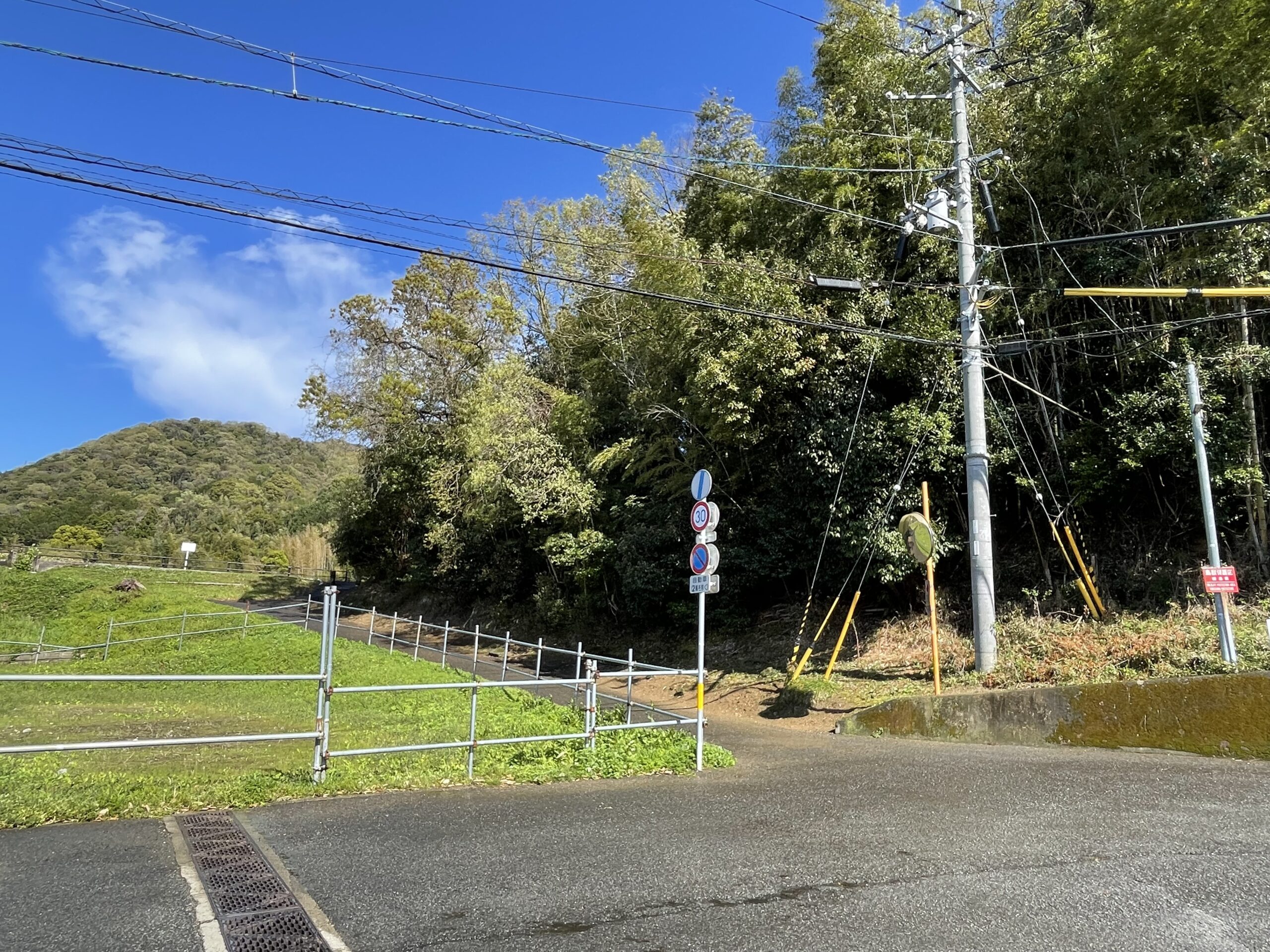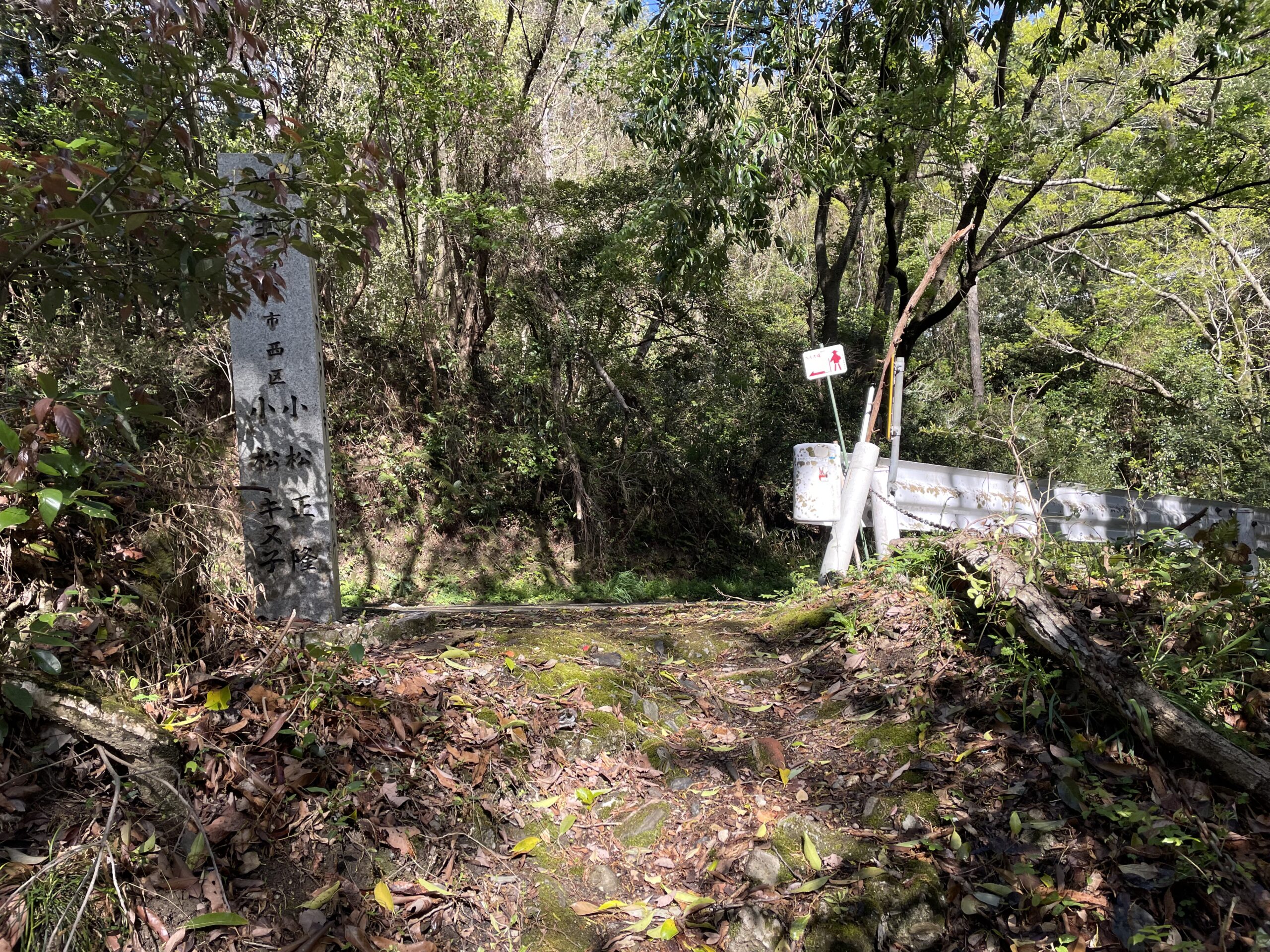 お地蔵さまから約15分、車道へ向けてますます角度をつけてくる急傾斜のラストスパートを登りきって(山道あるある)、やっと舗装路に出た。やれやれ、これでピークは抜けたのかしらと思っていたら5分もしないうちに再び山道へと誘われる。