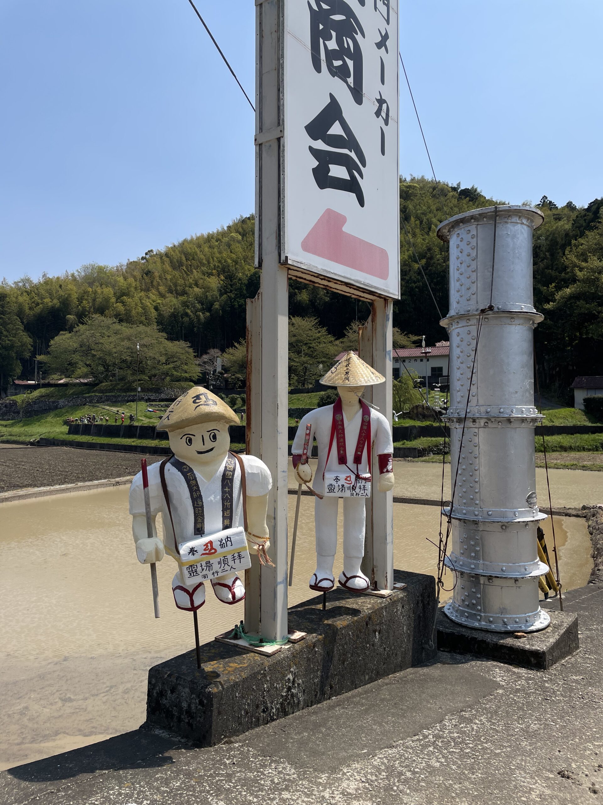 徳島では今時分が田植えの時季らしく、あちこちの田んぼで田起こしをしたり水を張ったりして準備をしている様子が見られた。地元では5月の連休後に田植えを始めるので、ずいぶん早いなと感じる。水門も全開で水路には水がたっぷり流れており、代掻きを終えて植え付けを待つ田んぼたちが水面をきらめかせていた。こういう風景のど真ん中で育ったわけではないのに懐かしいと感じる、日本人の心の原風景である。同時に昨今のコメ事情を思うと、こんな状況でもお米を作り続けてくださってありがとうございますと叫びたくなる(不審者)。