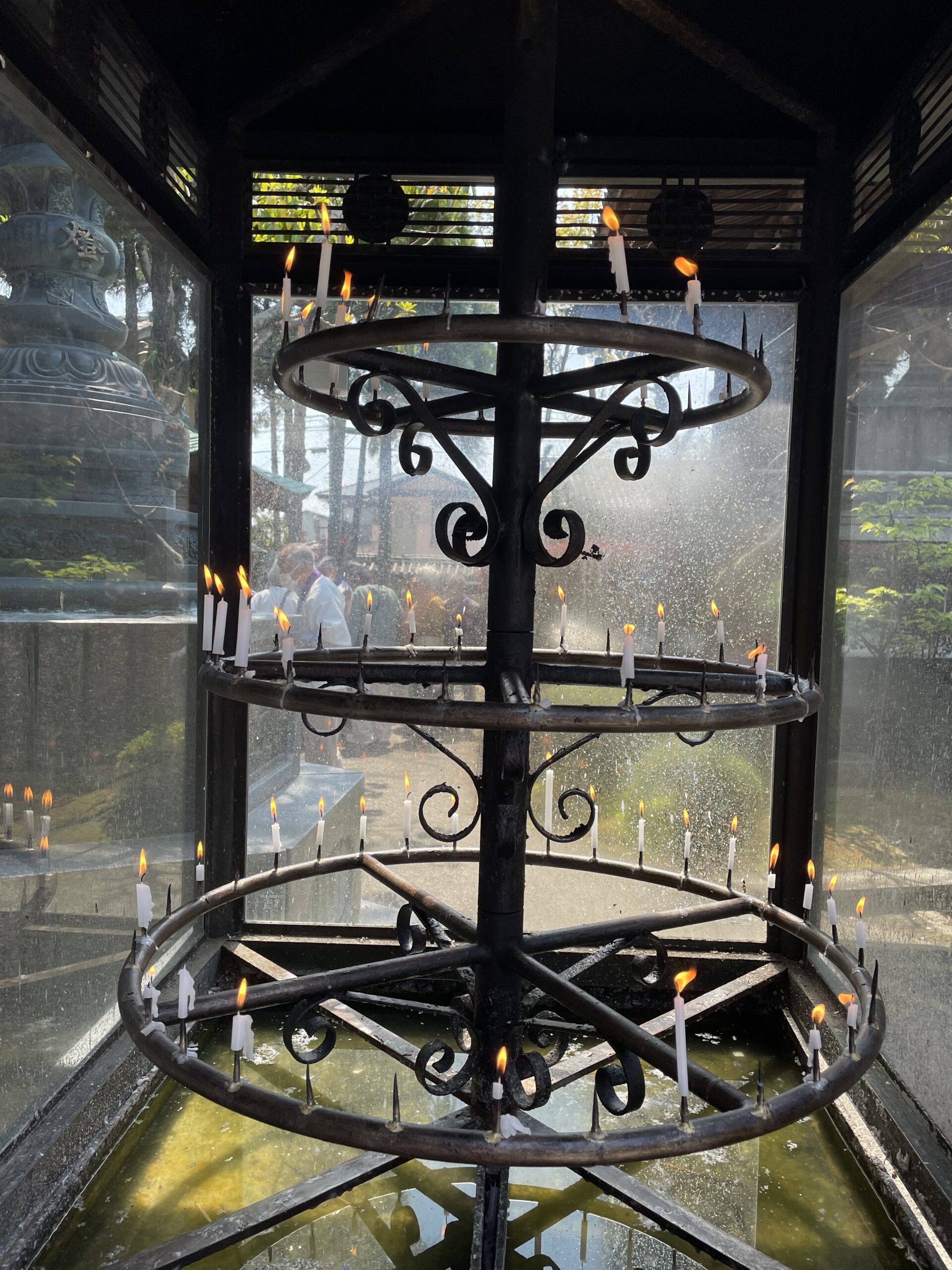 12:40、立江寺に到着した。立江寺は四国霊場のなかでは珍しく電車の駅が近くてアクセスが良いためか、多くの参拝者で賑わっていた(朝に見送った逆方向の電車に乗っていれば、なんと10分ちょっとで立江駅に着けたらしい。歩き遍路とは…笑)。聖武天皇が光明皇后の安産を祈願して建立したとされ、ご本尊の地蔵菩薩は地元では「たっちぇ(立江)の地蔵さん」と呼ばれて親しまれているそうだ。最大200人泊まれるという立派な宿坊があるのでお遍路さんにも人気のようで、杖立てがこんなにみっしり金剛杖で詰まっているのを初めて見た。