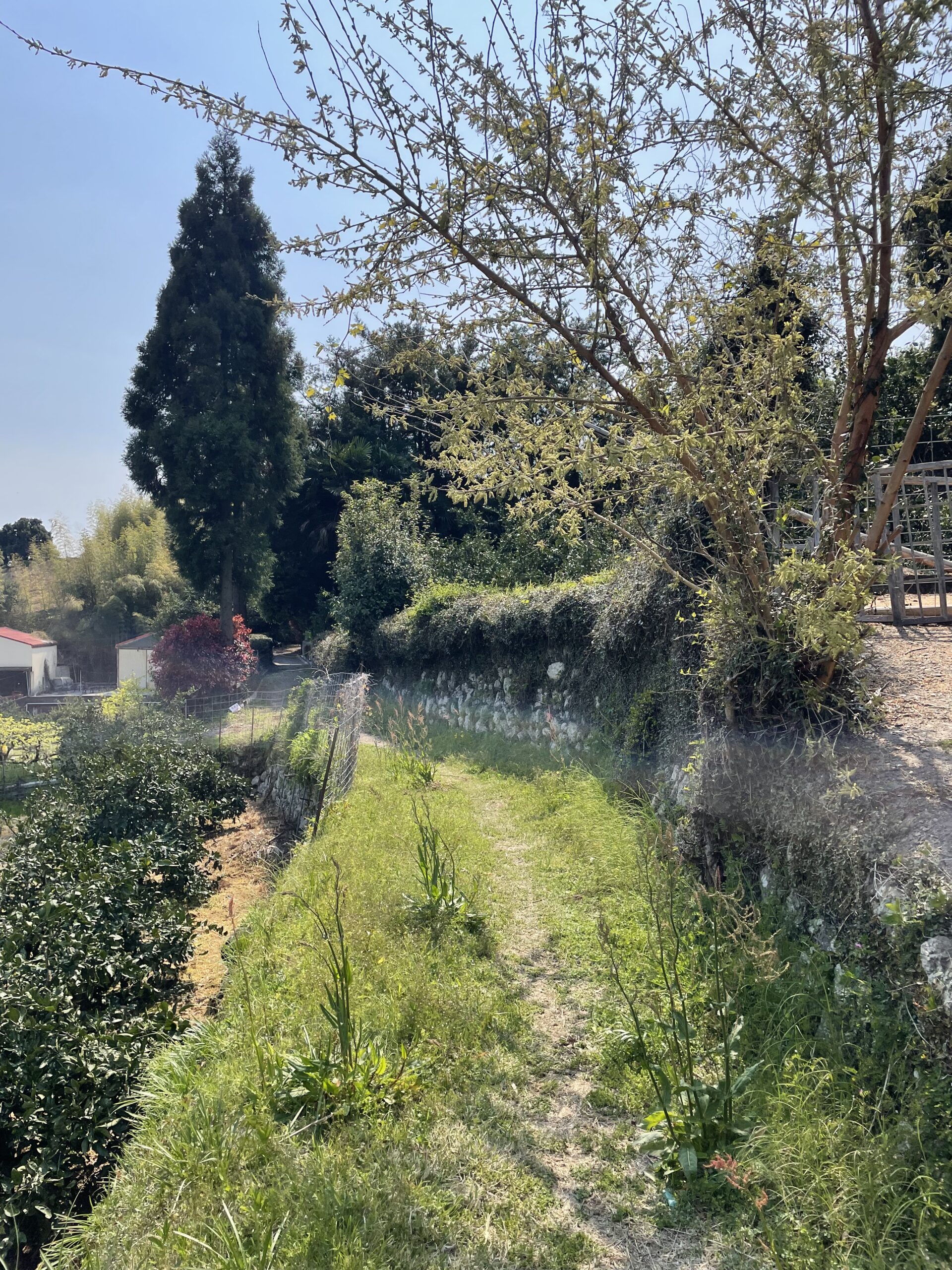 気持ちいい春の風に吹かれつつ田んぼの間の農道を歩いていくと、新居見城趾なるものが現れた。付近に案内の矢印も一応あったが、藪がもりもりで石碑も飲み込まれかけており、踏み入ったら大変な目に遭いそうな気配がする。史跡とか、自治体としては残したいし補助金取って整備はするけど、維持管理は大変だよね、分かる…と謎の親近感を覚えながらその前を通過する。