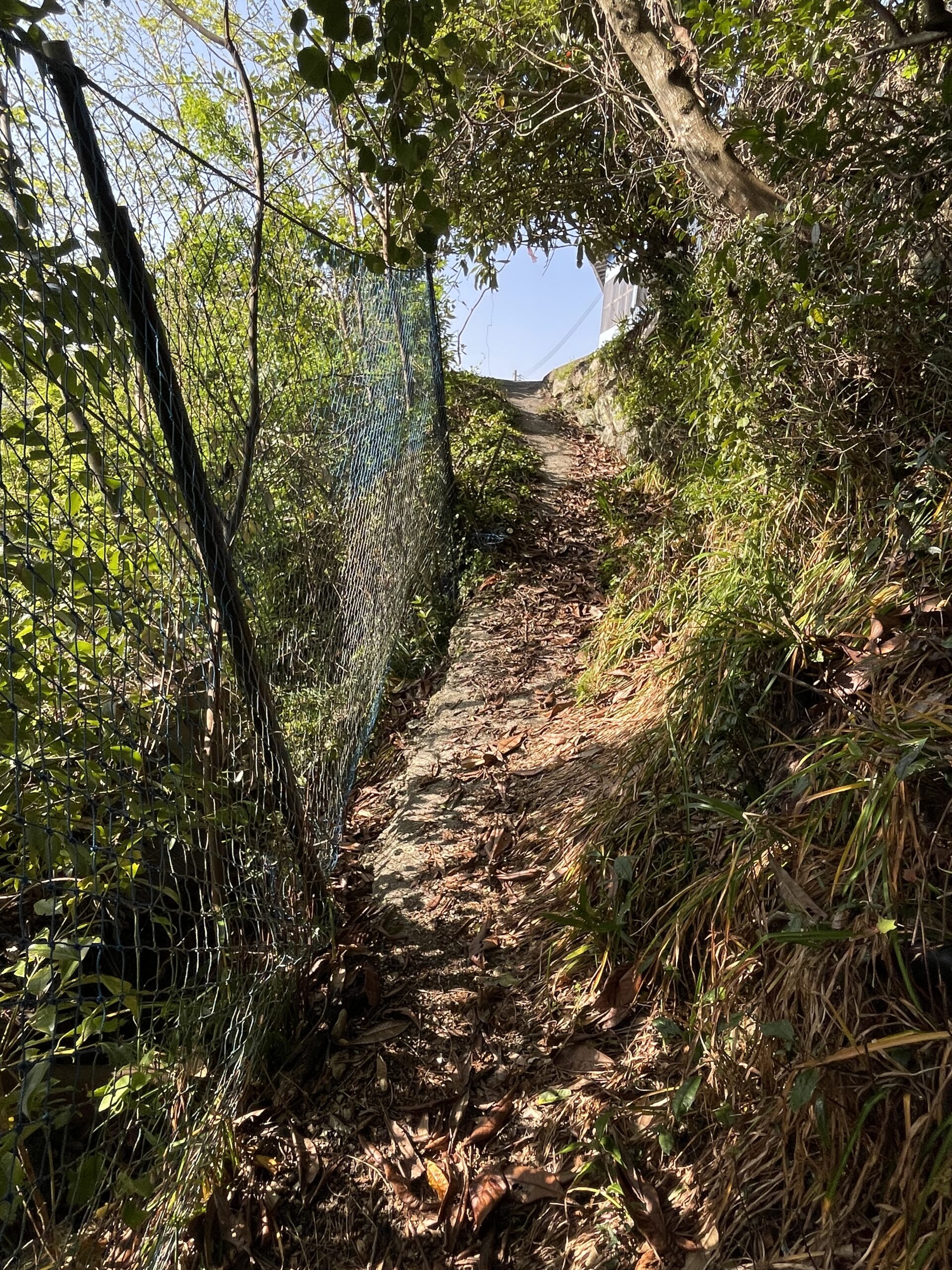 その後も、山道と民家の前のコンクリート道を縫いながらてくてく登る。先ほど書いた通り分岐には丁寧に行き先が示されているので迷いはしないのだが、たまに「え、そっち…?」と言いたくなるような細道へいざなってくるので、ちょっとした探検気分だ(おへんろ中だから突き進むけど、普段だったら絶対行かない)。