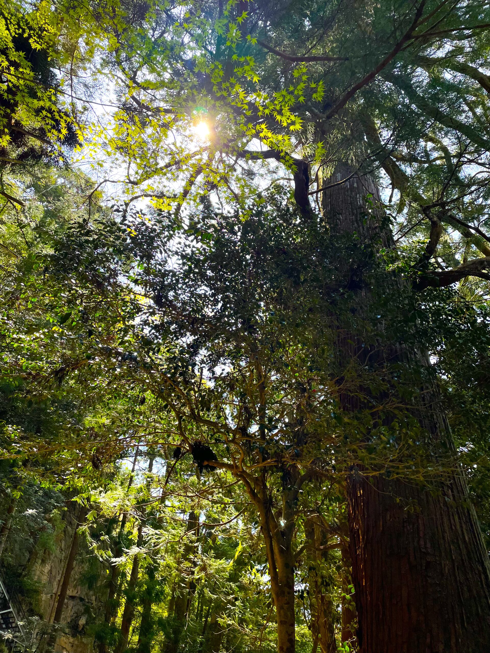 灌頂ヶ滝は落差が70mにもなり、空海がここで滝行をしたという伝説からその名が付けられたと言われている。晴れた日の午前中には光の加減で虹が見えるため「旭の滝」とも呼ばれ、滝壺に虹の架かるさまを人々は「不動の来迎」というのだそうだ。目を瞑ってみると、さらさらと水が舞い落ちる音が聞こえた。この壮大な空間をまるまる貸し切りの贅沢を噛み締める。