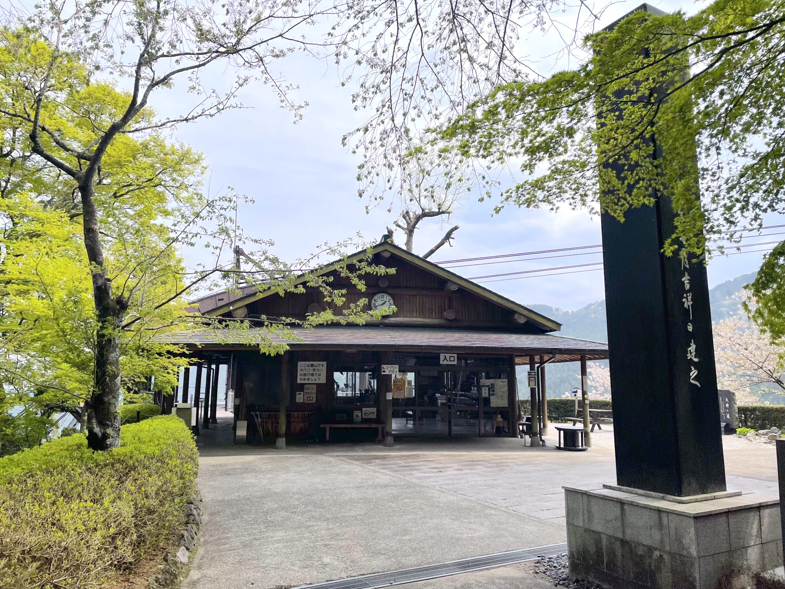 13:40、太龍寺を出発した。鐘楼門の階段を上らず左に坂を下っていくと、先ほど本堂の下に見えていたロープウェイ山頂駅に繋がる。魅惑のロープウェイ、再び(笑)。山麓駅の方向が宿(平等寺)と真逆なので今乗ってしまうと逆に話がややこしくなるが、絶対景色はいいので(トナリさんの写真で実証済)いつかは乗ってみたい。山麓駅の近くの宿を取り、下山はロープウェイを使うという作戦を取る歩きお遍路さんもいる。