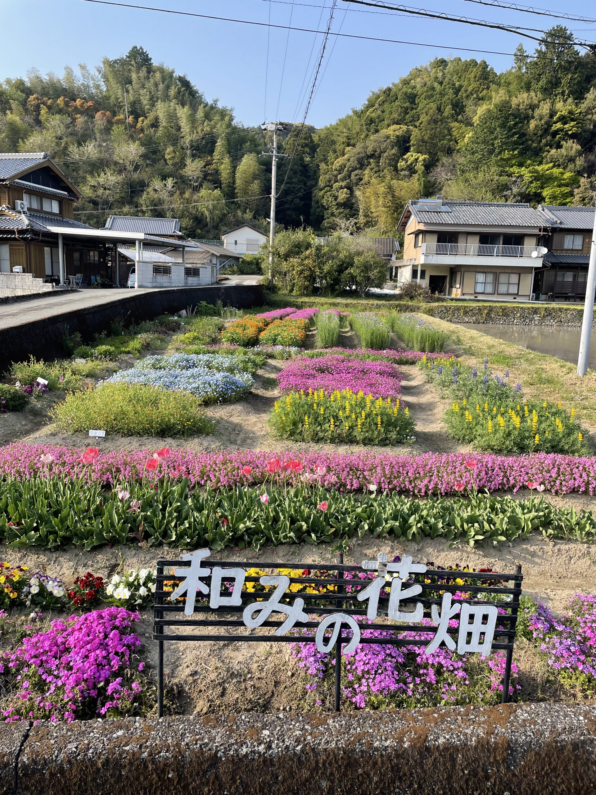 人の生活の気配、まだ高く暖かい陽射し、そして冷たい水で思う存分喉を潤して、やっと心を支配していた焦りがほどけていった。ここまで来られれば、もう大丈夫。道沿いにはお花がたくさん植えられていて、それらを楽しむ余裕も出てきた。峠を出てからも平等寺までの距離は意外にあり、あと1.6km、という看板がウッカリ目に入って絶望するが、遭難の危険はもう過ぎ去った。落ち着け落ち着け。